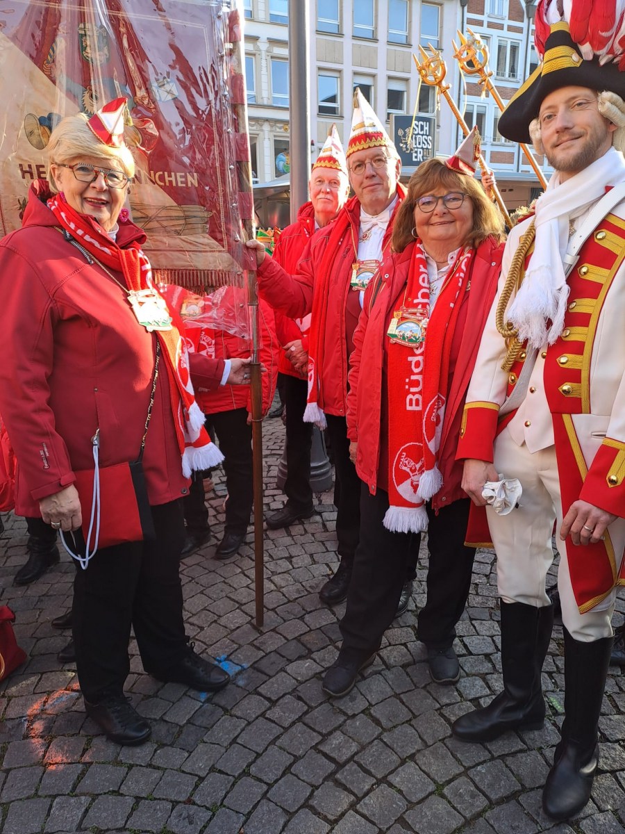 Am 11.11. hat pünktlich um 11:11 Uhr auch für die Büdericher Heinzelmännchen die neue Karnevalssession 2025/2026 begonnen. Nach einem gemeinsamen Frühstück im Schumacher Brauereiausschank “Im Goldenen Kessel” trafen die Heinzelmännchen die anderen Düsseldorfer Karnevalsvereine am Rheinufer. Von dort zogen die Vereine durch die Altstadt zum Marktplatz vor dem Rathaus. Exakt um 11:11 Uhr stieg dort der Hoppeditz aus seinem Senftopf um den Narren den Spiegel vorzuhalten. Nach 18 Jahren hat letztmalig Tom Bauer, der auch Mitglied der Heinzelmännchen ist, den Hoppeditz verkörpert. Nach der Vorstellung seines Nachfolgers und der Gegenrede des Oberbürgermeisters ging es für die Heinzelmännchen zurück in den Goldenen Kessel. Am späten Nachmittag begab sich dann eine Abordnung des neuen Elferrats auf Tingeltour durch die Altstadt zu den Biwaks befreundeter Vereine.