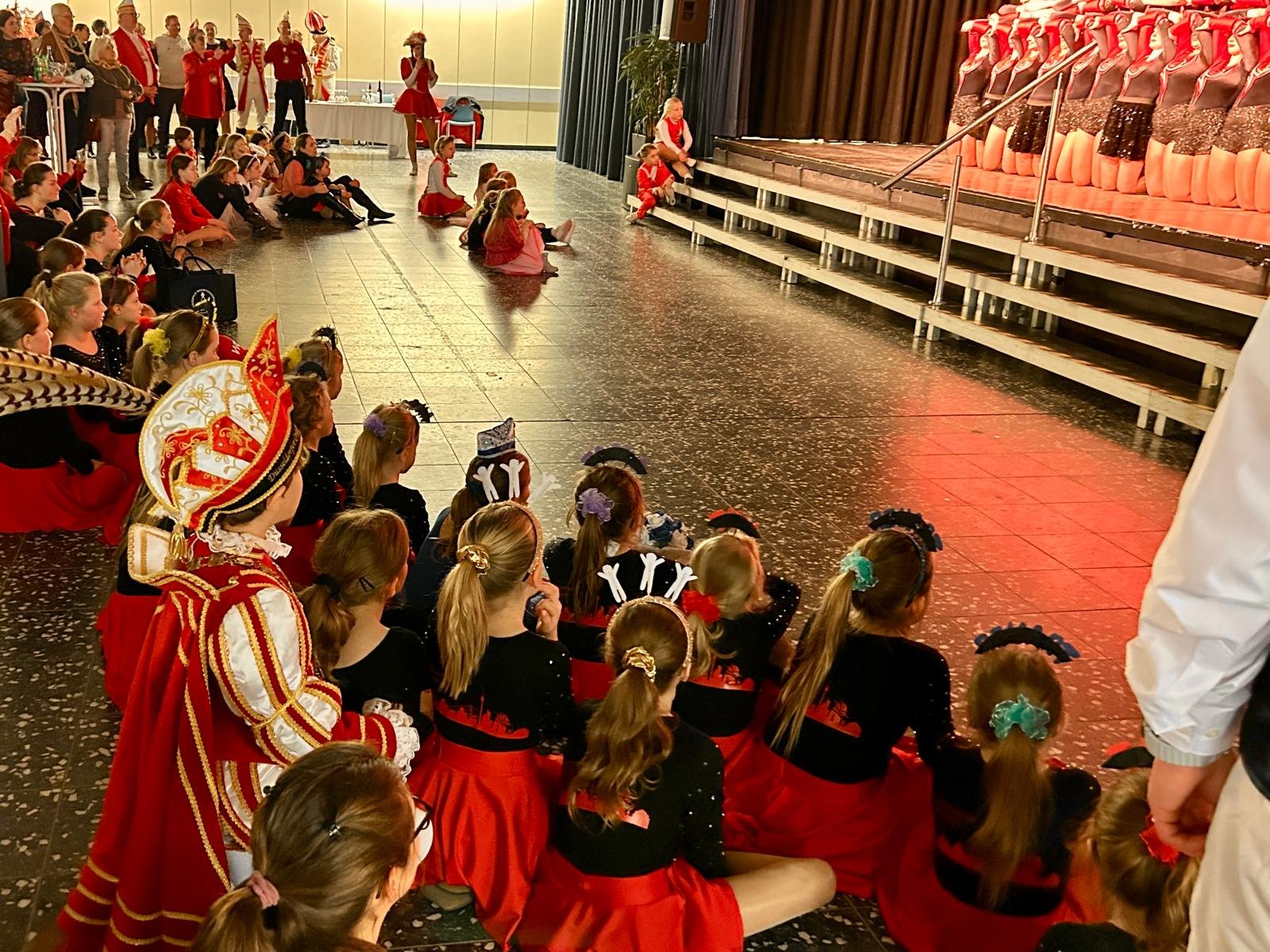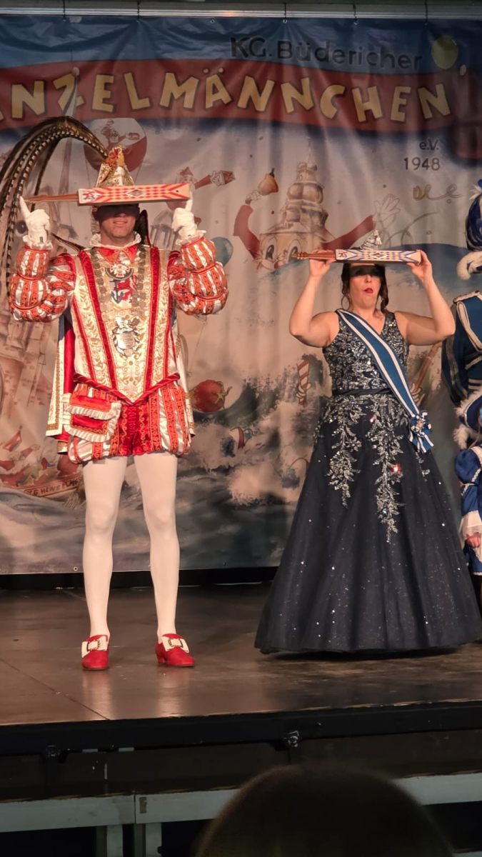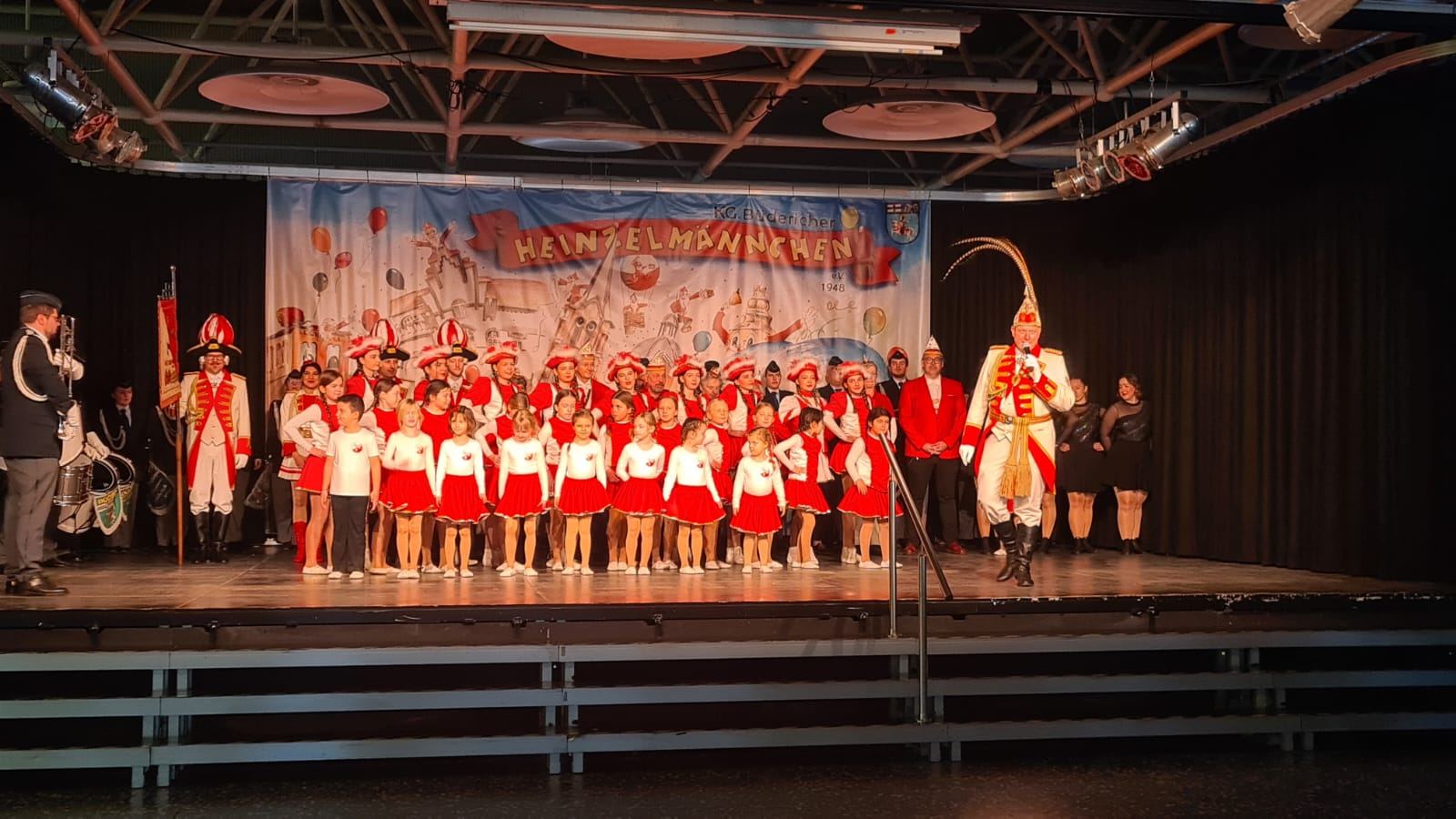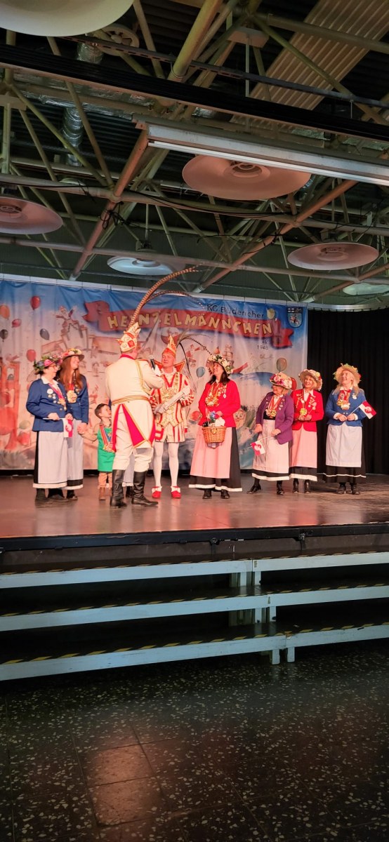 Erstmals haben die Büdericher Heinzelmännchen im Städtischen Mataré-Gymnasium ihr Richtfest gefeiert – auch wenn es in diesem Jahr eigentlich gar keinen Wagen zu feiern gab. “Wir haben uns von unserem über 70 Jahre alten Wagen getrennt und uns ein neues Gefährt zugelegt. Nach der Session wird der LKW-Anhänger zum Rosenmontagswagen umgebaut, sodass wir in der kommenden Session wieder mit einem Wagen beim Düsseldorfer Zoch dabei sind”, erklärt Heinzelmännchen-Präsident David Burkhardt. Natürlich sind die Heinzelmännchen aber auch in diesem Jahr beim Düsseldorfer Rosenmontagszug dabei – mit Fußgruppe und Planwagen als Ersatz. Gefeiert wurde daher das Richtfest trotzdem, mit einem bunten Programm für Jung und Alt. Neben den verschiedenen Tanzgarden der Heinzelmännchen statteten auch das Düsseldorfer Prinzenpaar, die Düsseldorfer Originale, die Närrischen Marktfrauen mit ihrem Sellerieprinzen, das Bundesfanfarencorps Büderich und die Düsseldorfer Bürgerwehr einen Besuch hab. Zahlreiche Kinder folgten dem Programm gespannt direkt vor der Bühne – “Ein tolles Bild, wie hier der Nachwuchs mitfeiert”, stellte der Präsident fest. Gedankt wurde auch den beiden Sponsoren, die die Heinzelmännchen unterstützen – die Firma DSV für die Anschaffung und die Stadtwerke Meerbusch für den Umbau des LKW-Anhängers zum Rosenmontagswagen.